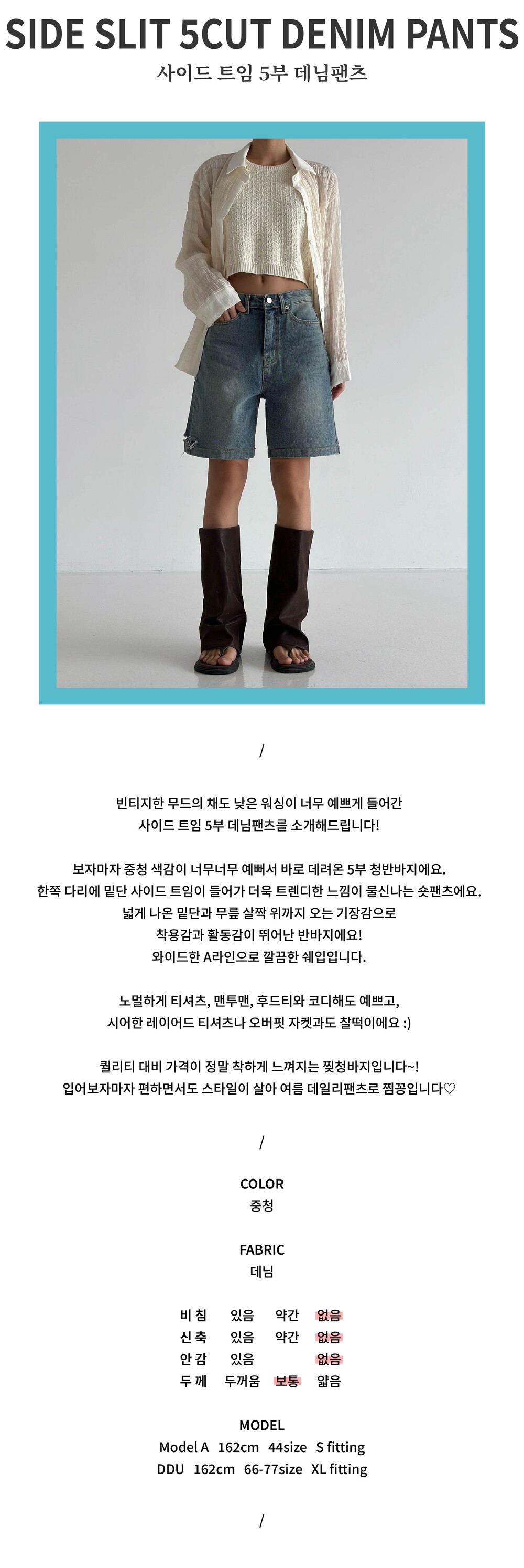 사이드 트임 5부 데님팬츠를 소개해드립니다!