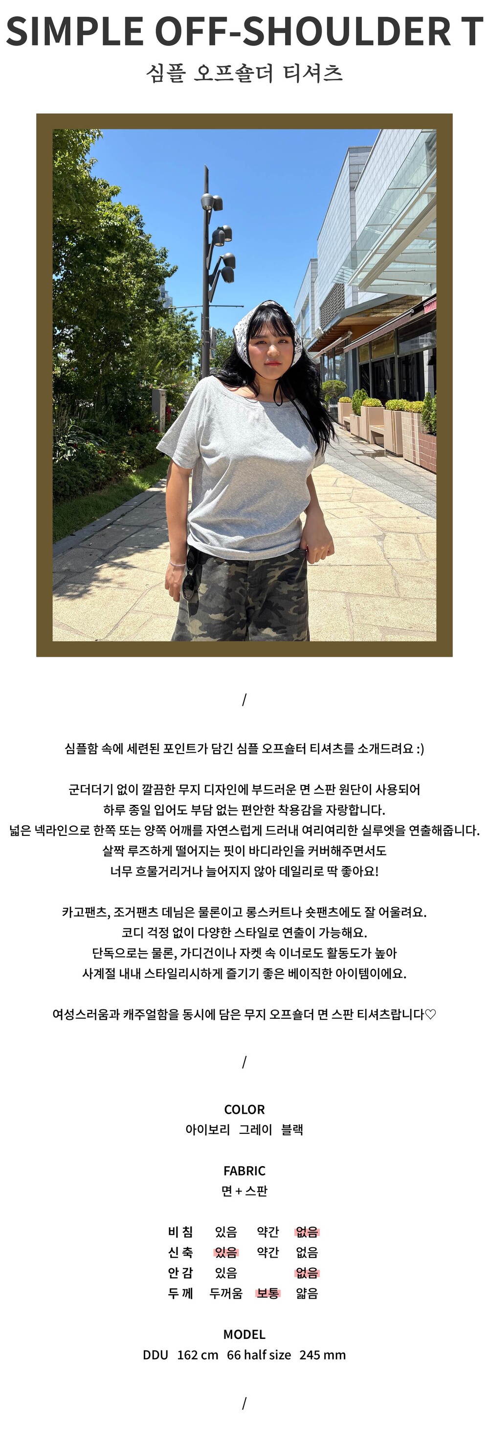심플함 속에 세련된 포인트가 담긴 심플 오프숄터 티셔츠를 소개드려요 :)