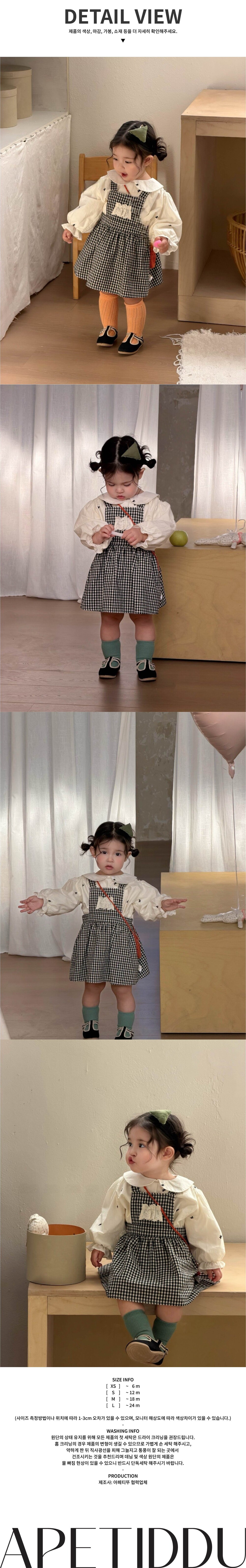 [XS-L] 스몰 체크 원피스+블라우스 세트