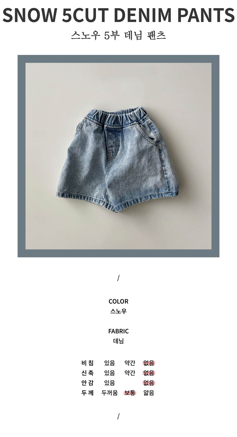 [XS-JL] 스노우 5부 데님 팬츠
