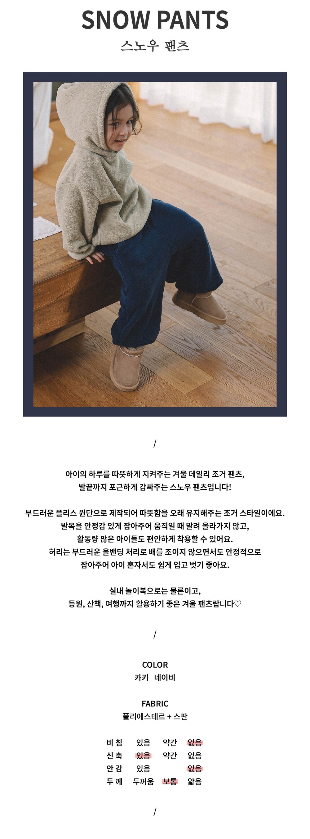 등원, 산책, 여행까지 활용하기 좋은 겨울 팬츠랍니다♡