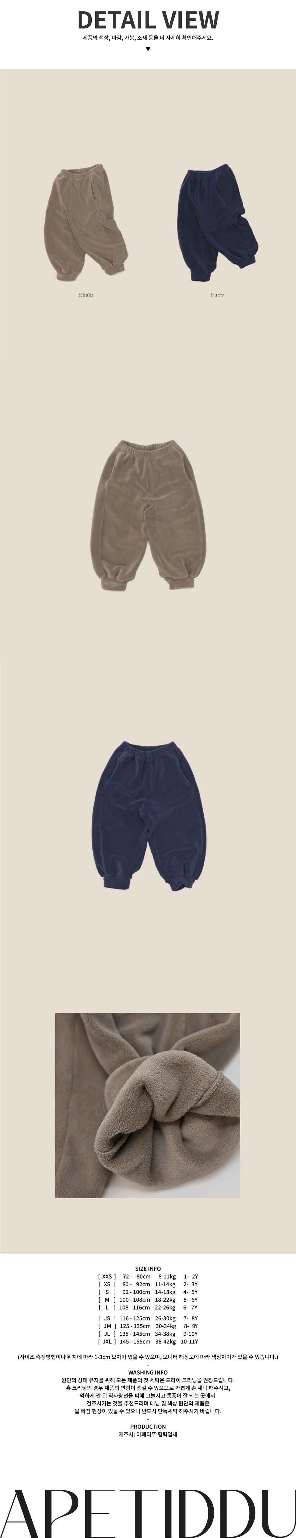 부드러운 플리스 원단으로 제작되어 따뜻함을 오래 유지해주는 조거 스타일이에요.