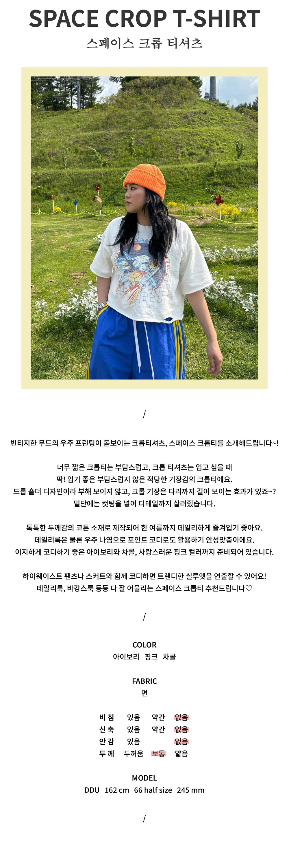 데일리룩, 바캉스룩 등등 다 잘 어울리는 스페이스 크롭티 추천드립니다♡