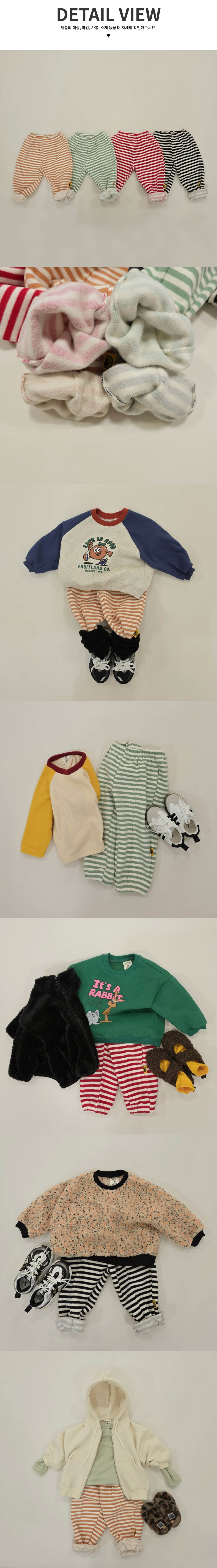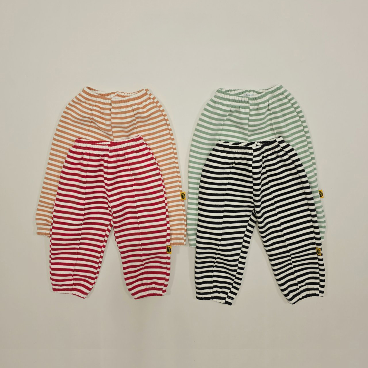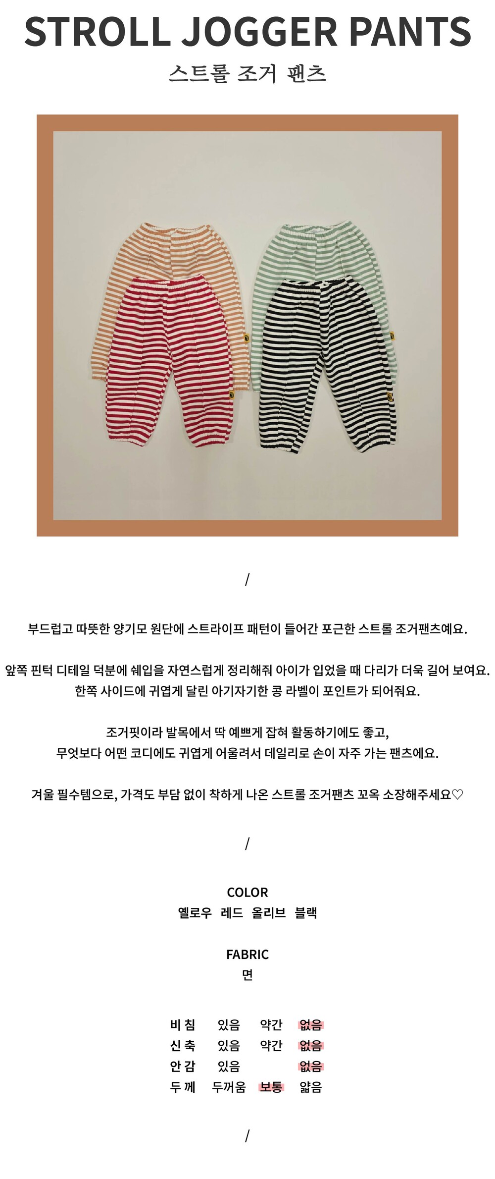 부드럽고 따뜻한 양기모 원단에 스트라이프 패턴이 들어간 포근한 스트롤 조거팬츠예요.