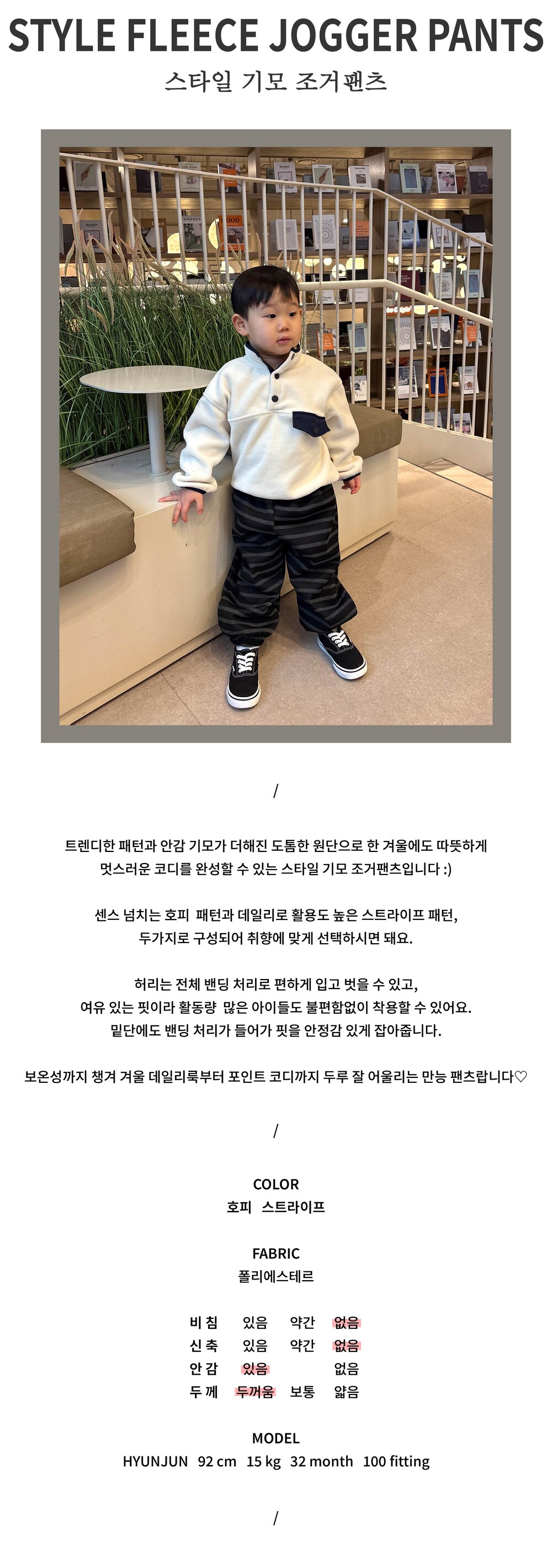 아페티뚜 모델 '현준'은 100 사이즈를 착용했습니다.