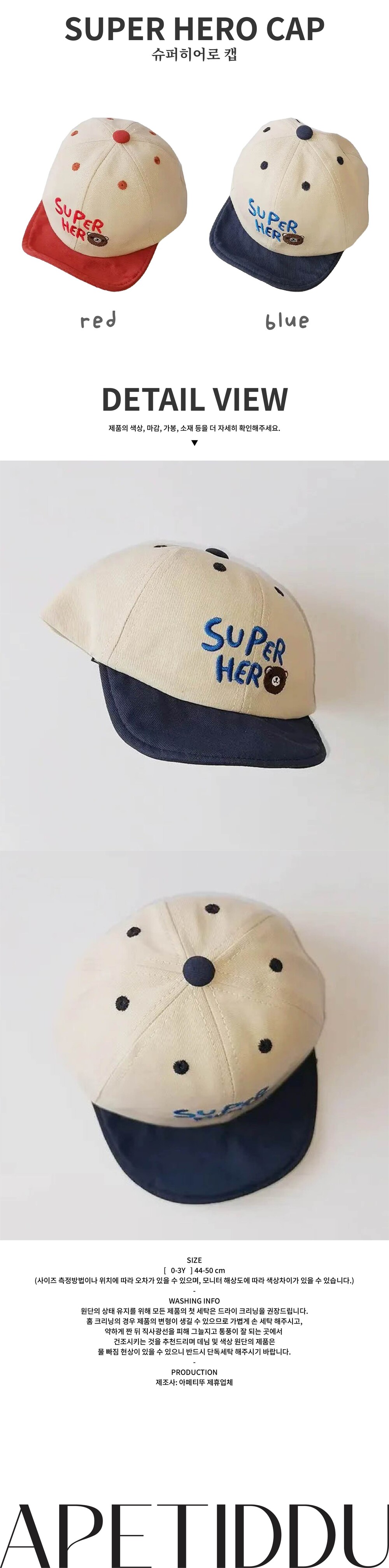 캡 부분에 컬러 포인트가 들어간 슈퍼히어로캡입니다.