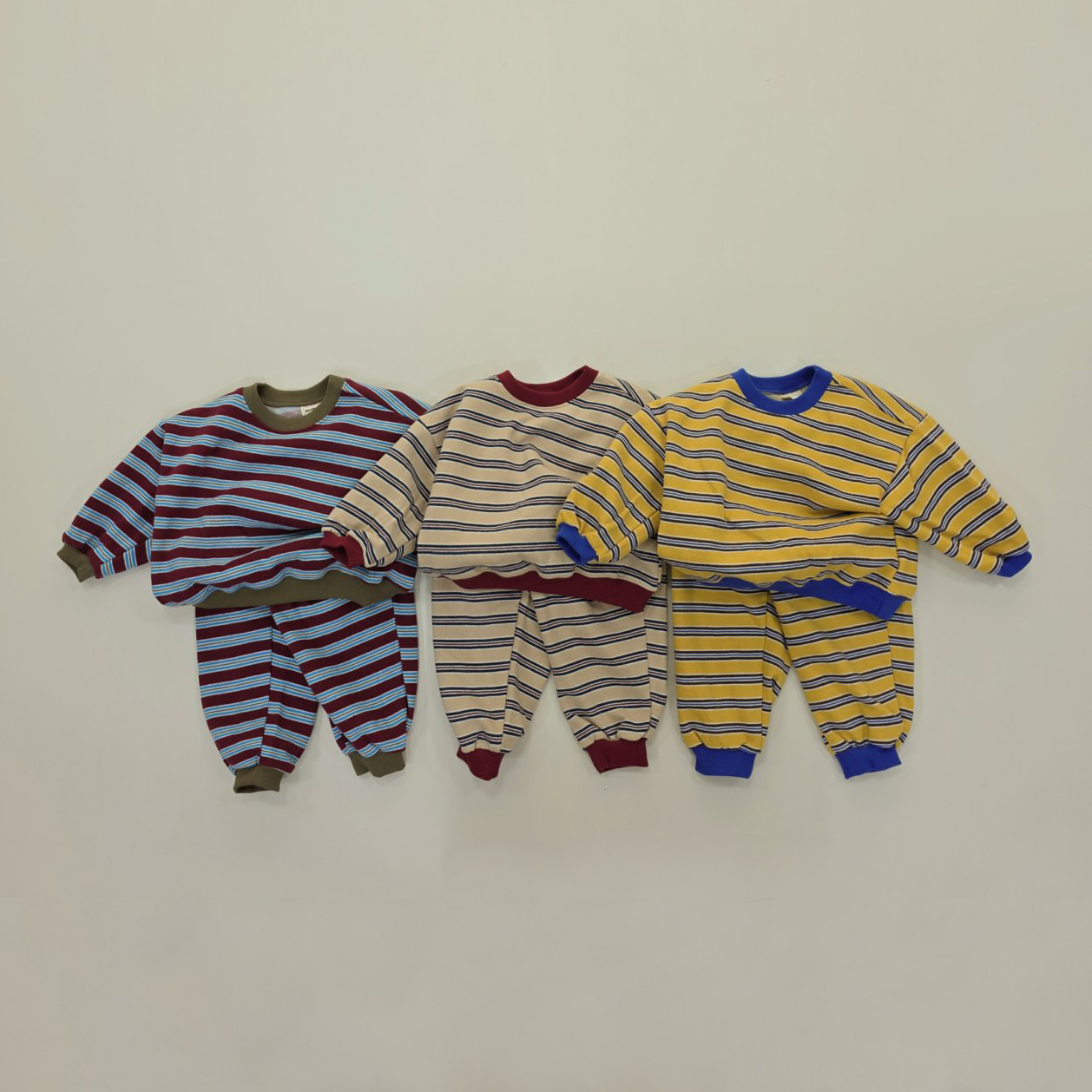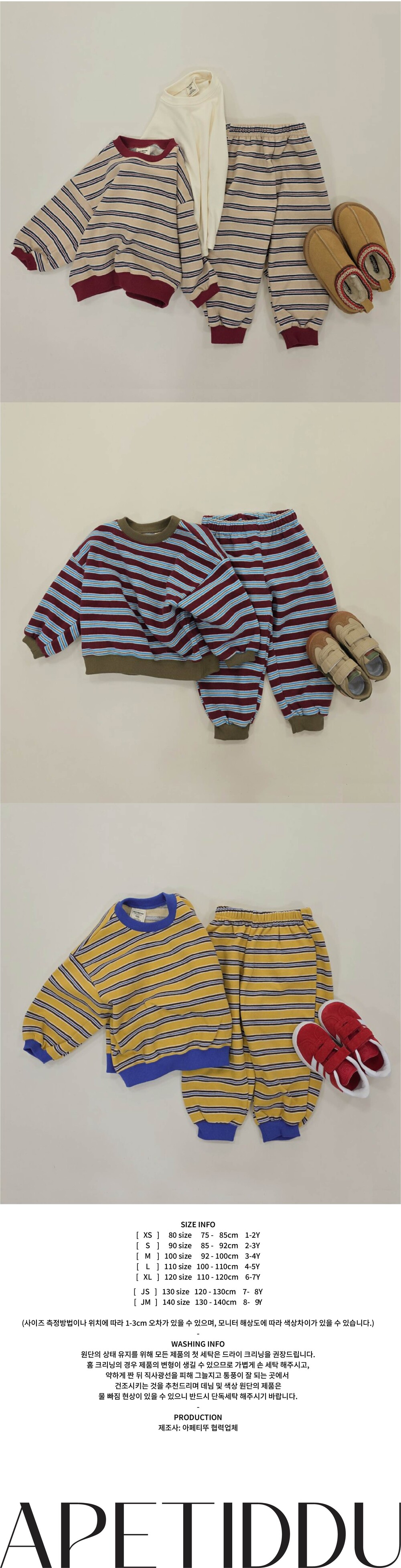상의, 하의에 스트라이프 컬러가 배색으로 톡톡 들어가 있어서