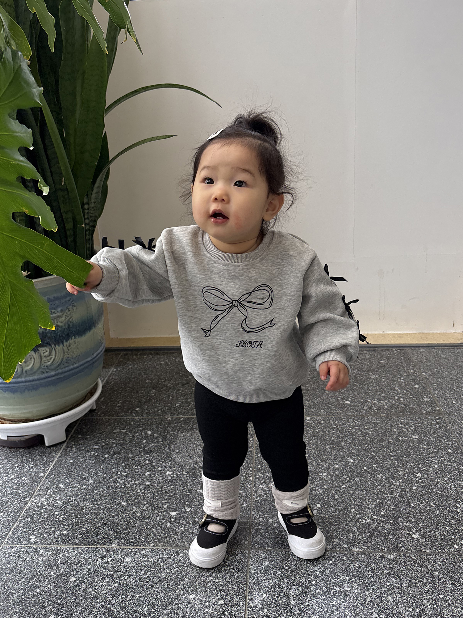 리본 디테일이 시선을 확 사로잡는 맨투맨과 레깅스가