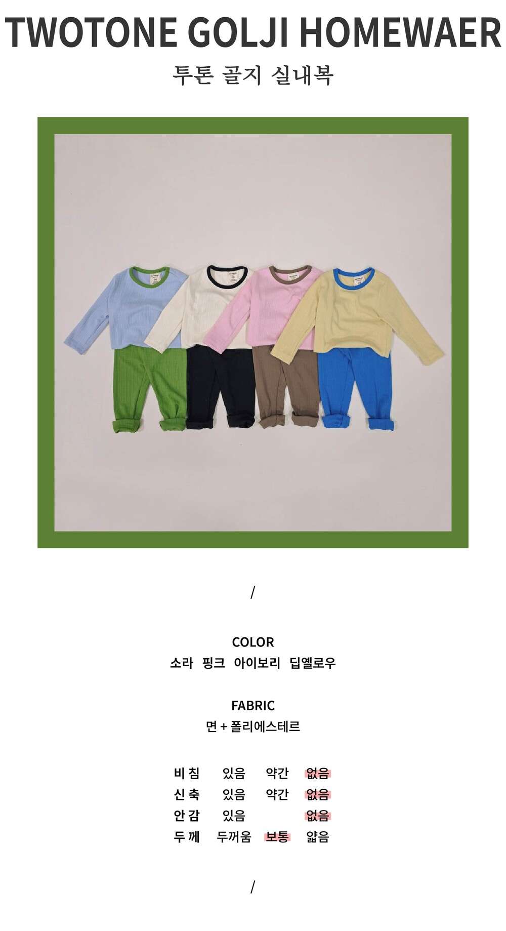 [XS-JM] 투톤 골지 실내복