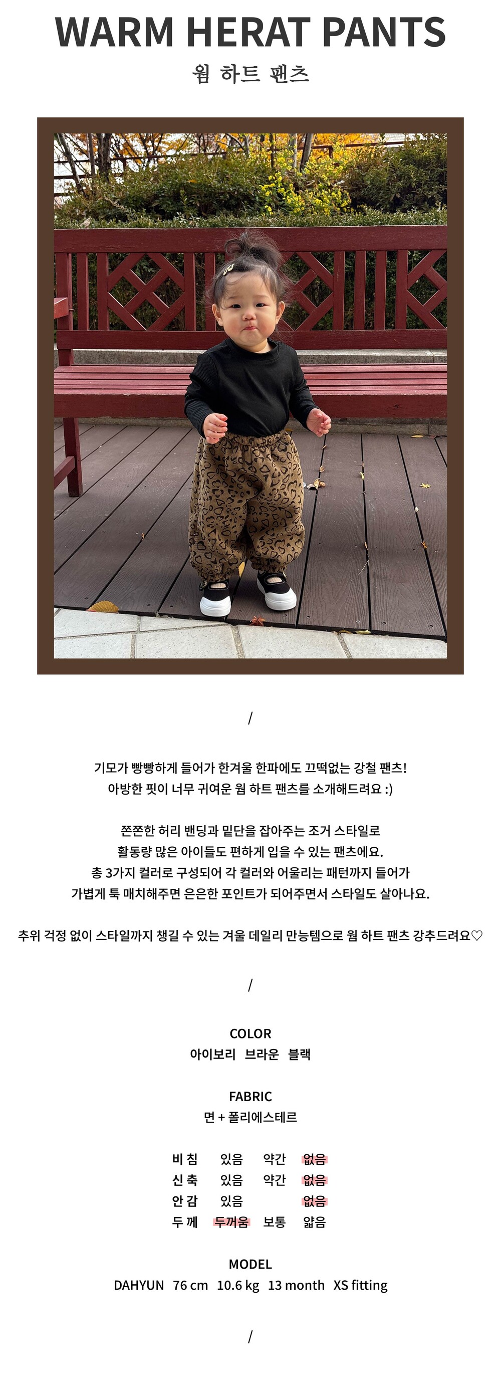 아방한 핏이 너무 귀여운 웜 하트 팬츠를 소개해드려요 :)
